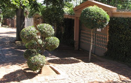 It is important to create a harmonious effect. The hardscape should complement the rest of the home. In South Africa, we make use of brick extensively. If chosen well, the brick can compliment any house facade and it is not as harsh as plain concrete or a tar driveway. It is easy to shape as you wish and the plants can really create a stunning effect together with the brick driveway.